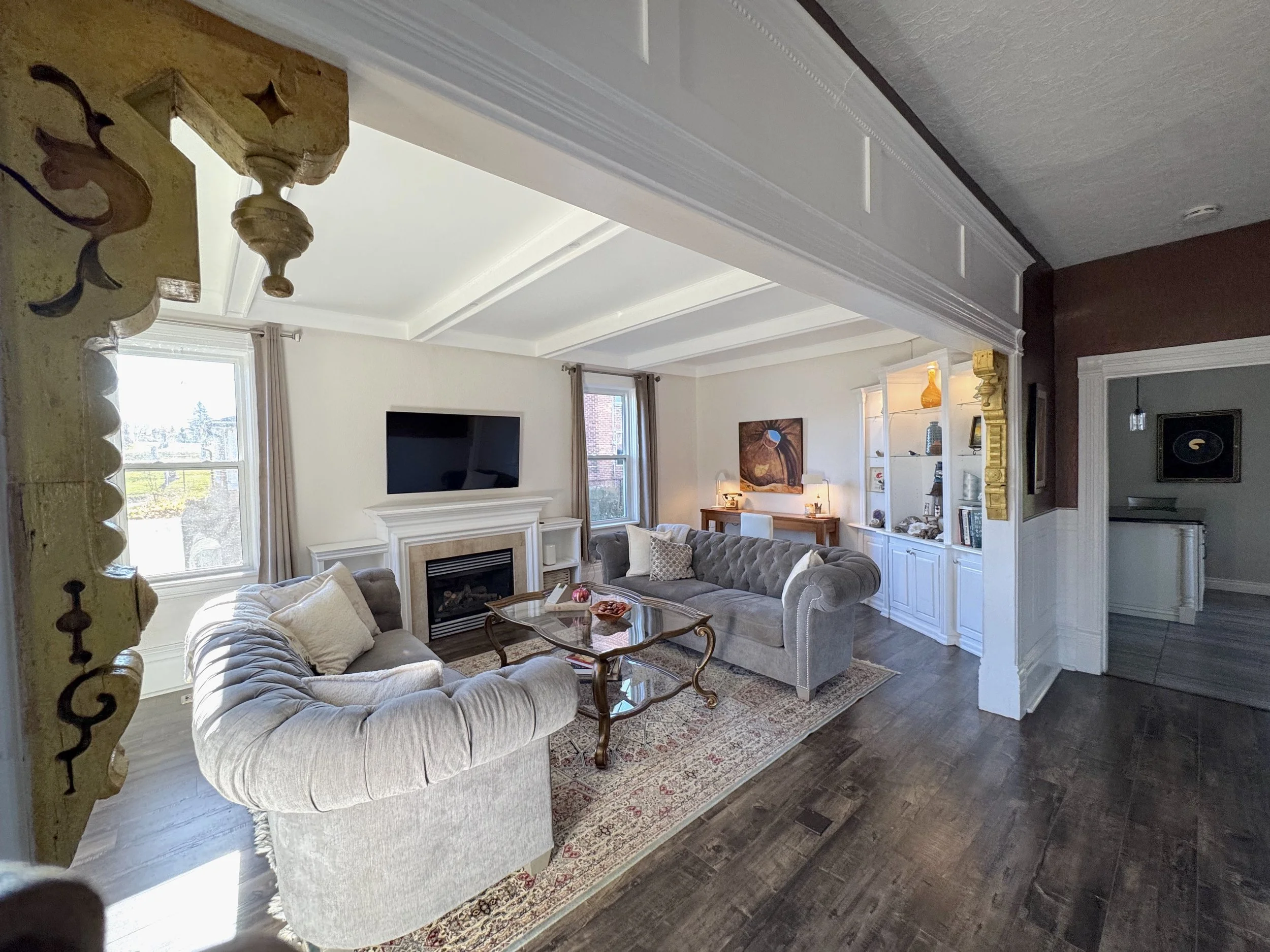 Stylish & welcoming living room with fireplace & smart TV